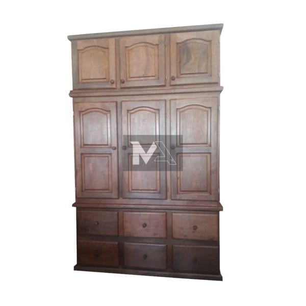 La estructura sólida del placard permite una distribución eficiente del espacio interior, con amplios compartimentos diseñados para optimizar el almacenamiento. Incorpora estantes espaciosos para ropa doblada, una sección con barrales resistentes para prendas colgadas y cajones profundos para guardar objetos más pequeños, asegurando organización y accesibilidad. Su firmeza estructural lo convierte en un mueble que soporta el uso diario sin perder estabilidad ni deteriorarse con el tiempo.